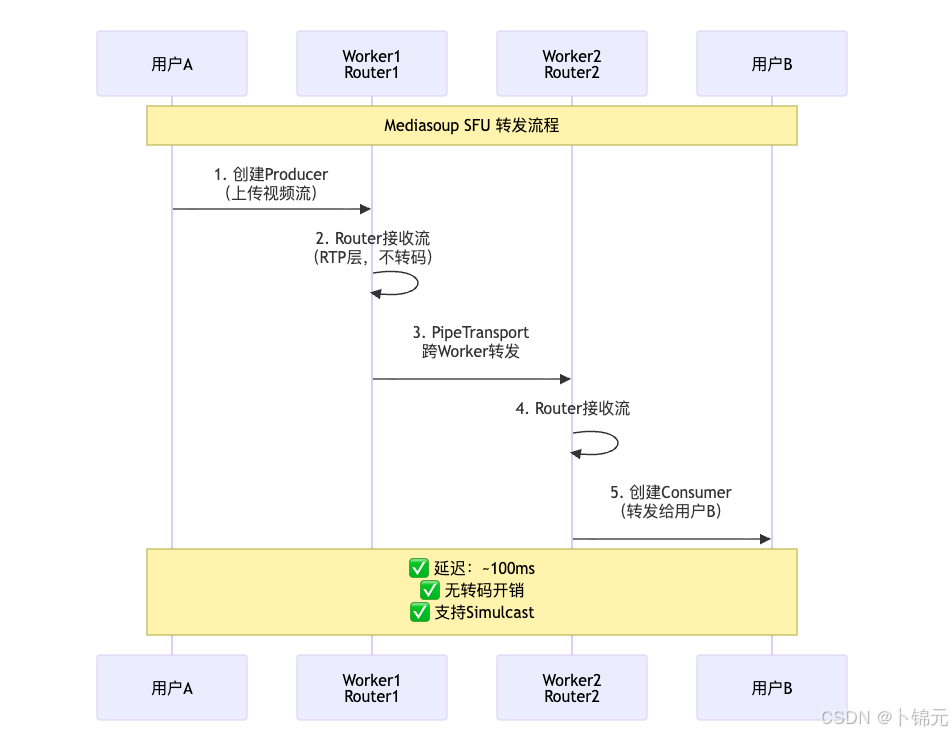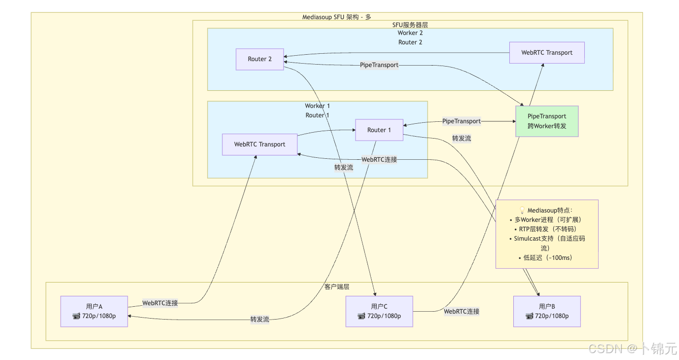 - 支持 PipeTransport(跨 Worker 或跨主机转发流)