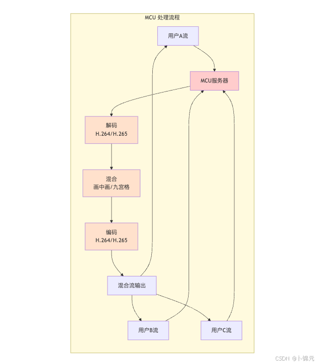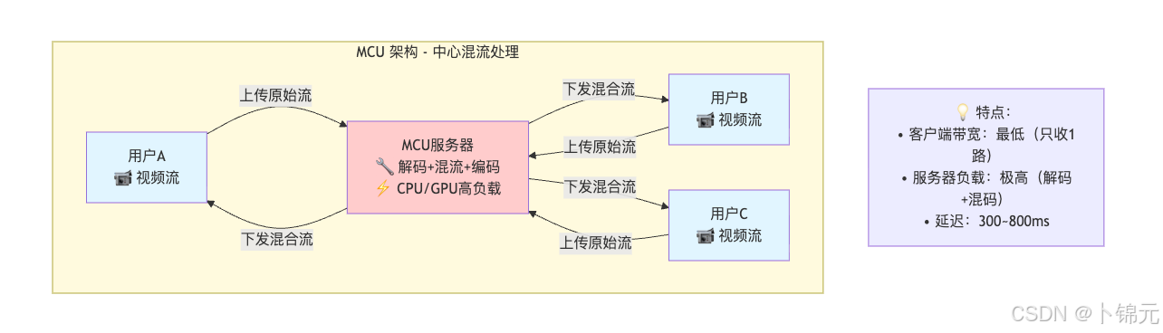 - MCU 的 CPU、GPU 压力极大(每路流都要解码+混码)。