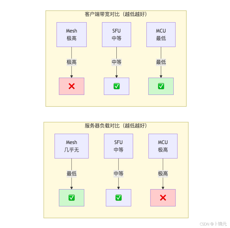 比如 720p × 10 用户 → 客户端上传 9 路 720p,直接爆炸。 - 无法实现录制、转码、旁路直播、弱网优化等功能。