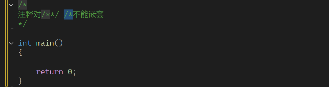 **代码风格培养:**当注释界定符要跨越多行注释时,最好能显示指出其内部的程序行都属于多行注释的一部分,我们所采用的风格是,注释内的每行都以一个(*星号)开头,从而指出整个范围都是多行注释的一部分。
