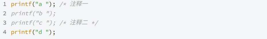 这种注释以/*开始,以*/结束,可以注释掉除*/以外的任何内容,包括换行符。
