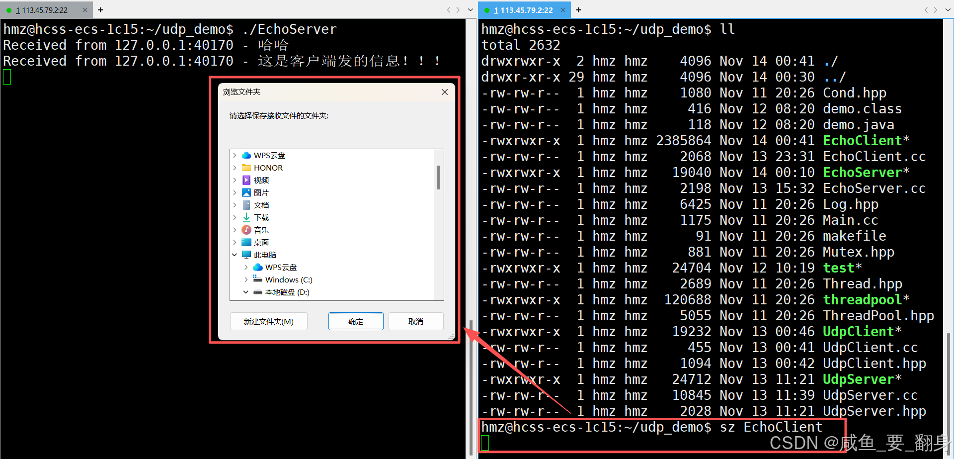 这个简易回声服务器实现完整展示了UDP通信的基本模式,可以作为网络编程学习的基础示例,也可以根据需要扩展为更复杂的协议实现。