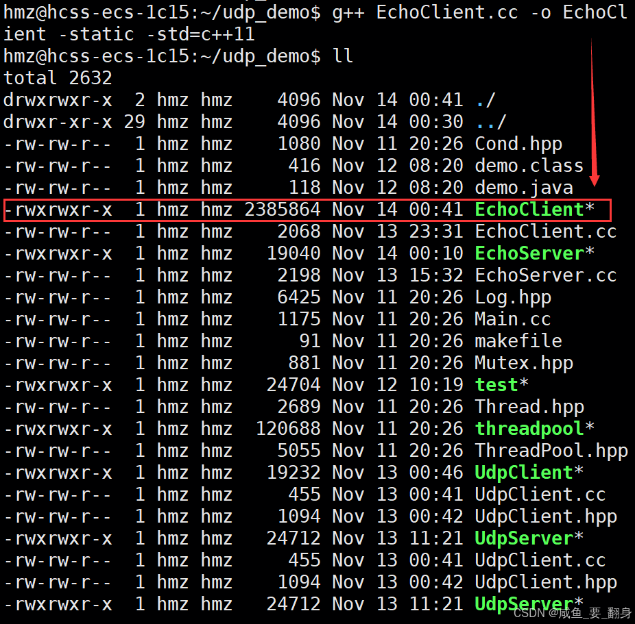 你可以将生成的可执行程序分享给朋友进行网络测试。为确保程序在各台设备上完全一致,建议在编译客户端时添加-static参数进行静态编译。所以为了在不同机器上运行相同的客户端程序,建议进行静态编译: