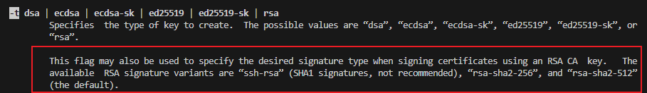 之前 blog 【Ubuntu】【远程开发】内网穿透:密钥算法介绍(一) 最开始说密钥算法的时候,提到 -t 选项可以选择用来生成密钥的算法类型 ,除了指定密钥算法类型外,-t 还可以用来指定签名算法