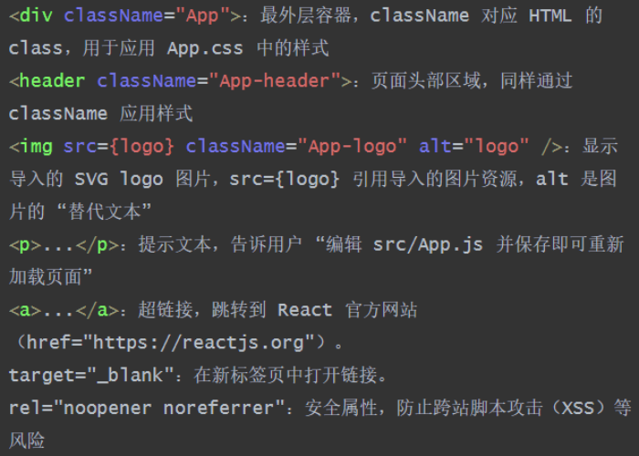 这是一个 函数式组件 (React 中定义组件的方式之一),组件的 UI 由返回的 JSX(JavaScript XML,一种类似 HTML 的语法,用于描述 React 组件的结构)描述