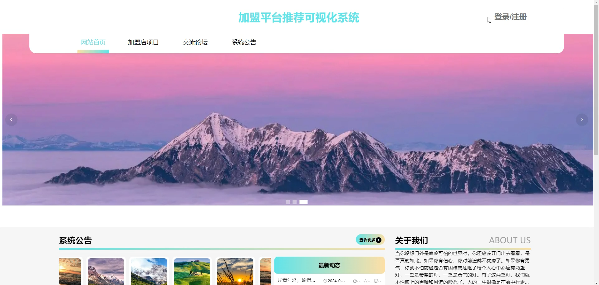 本系统旨在弥补现有平台的这些不足,构建一个以SpringBoot为后端核心,集成推荐算法,并配备强大前端可视化功能的现代化加盟服务平台。