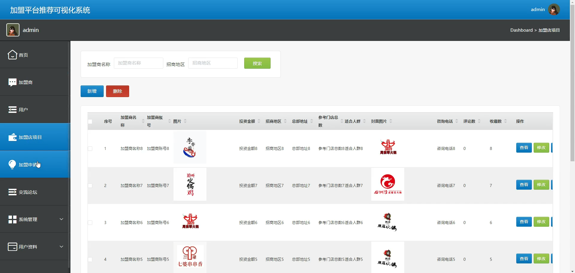 因此,开发一个集智能推荐、多维度数据分析和交互式可视化于一体的加盟平台系统,具有重要的现实需求和明确的应用背景。