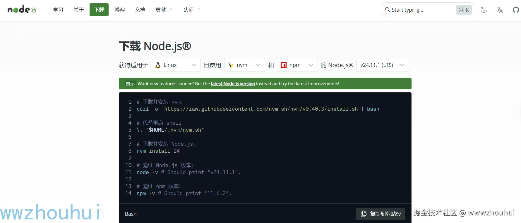 Playwright 需要 Node.js 16+ 环境。我们可以去nodejs.org/zh-cn/downl... 下载