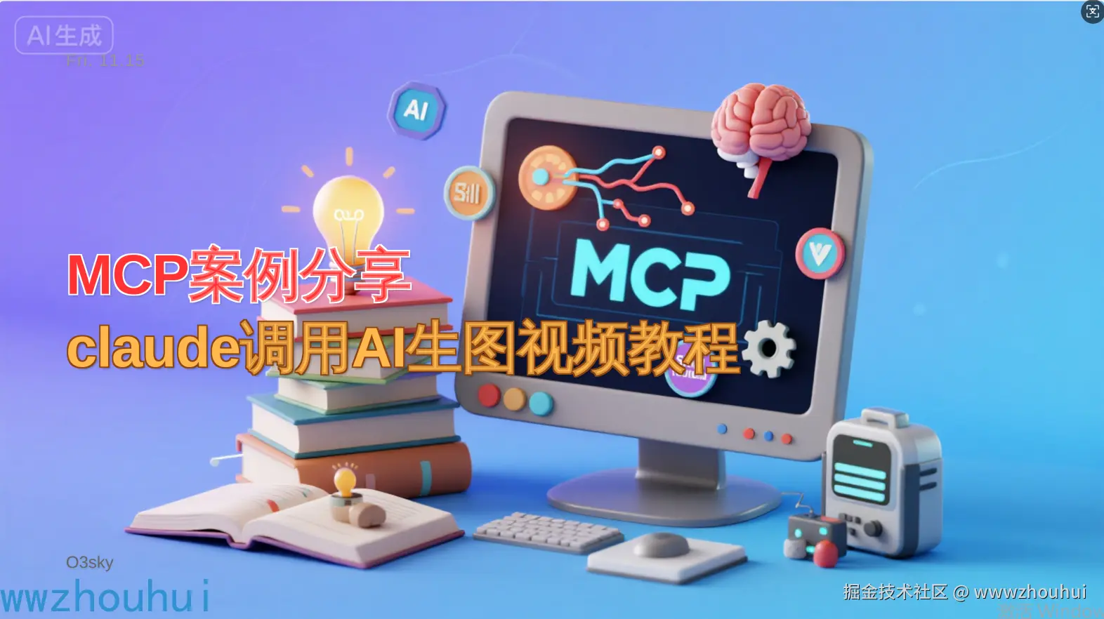 1. AI 驱动的底图生成 它集成了即梦 AI(字节跳动旗下的多模态 AI 生成平台),能根据你的主题关键词,自动生成可爱圆润的 3D 插画风格底图。你说"MCP 技术教程",它就给你生成一个带着可爱电脑、AI 大脑、教程书籍的卡通场景。风格类似皮克斯动画,质感柔和,色彩明快,看着就让人舒服。