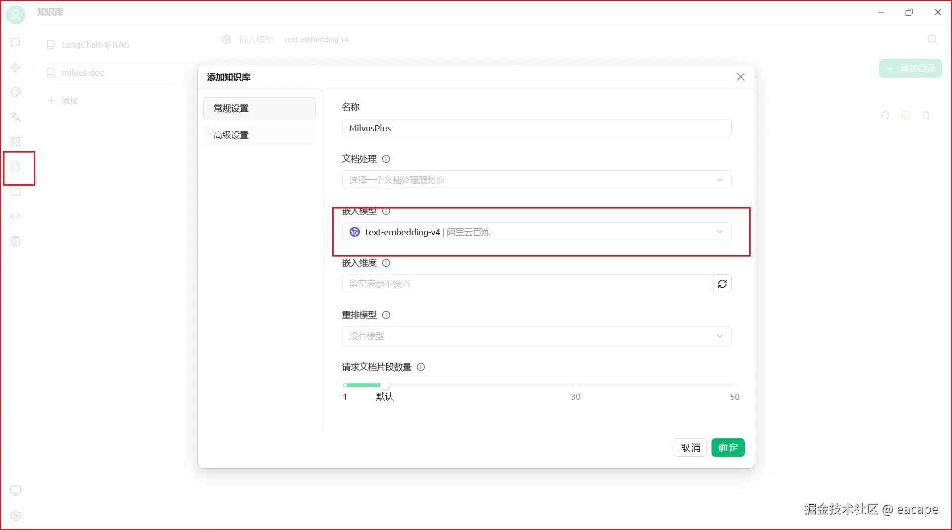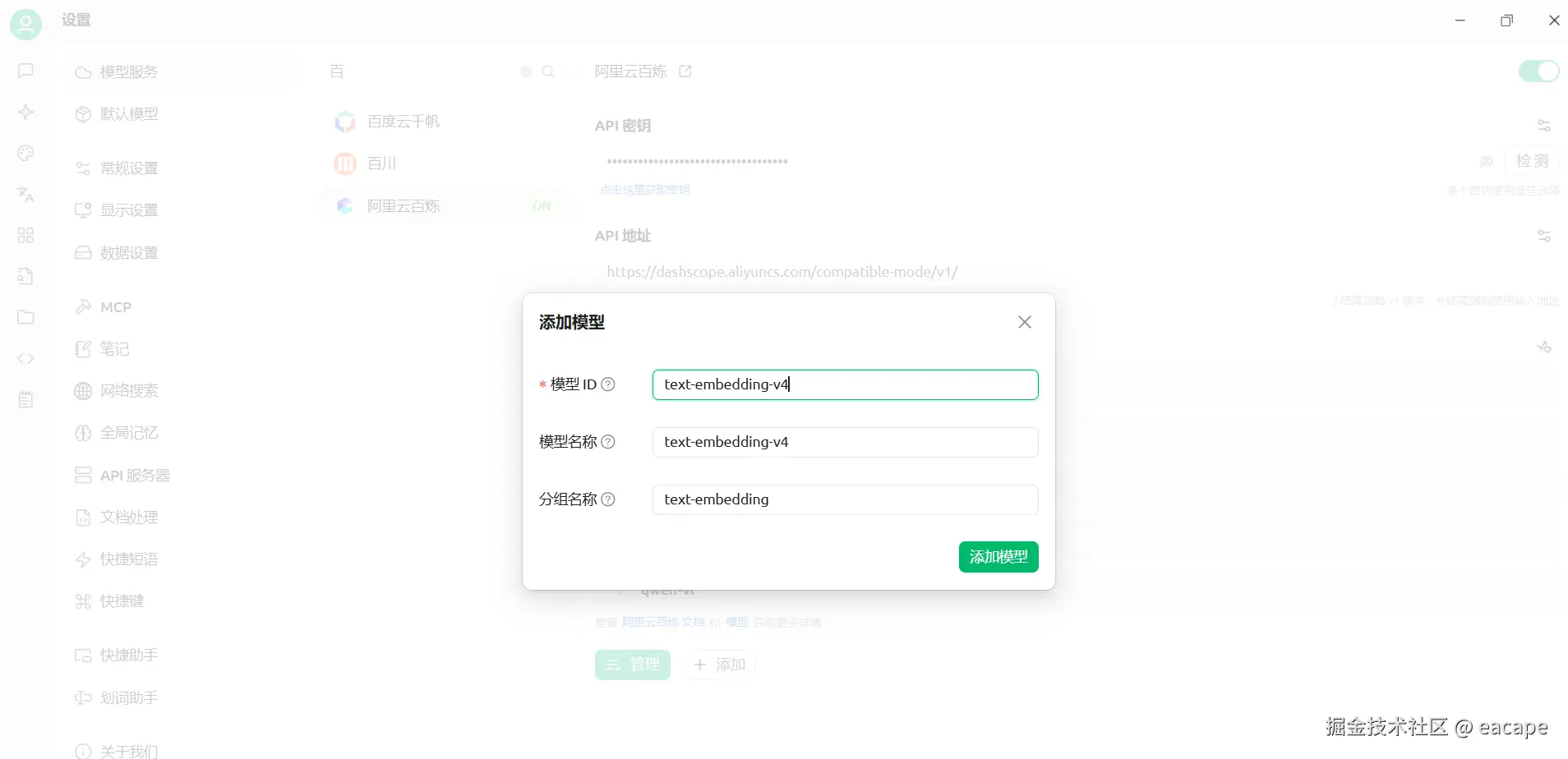 然后点击最下方的添加按钮,添加向量模型:text-embedding-v4