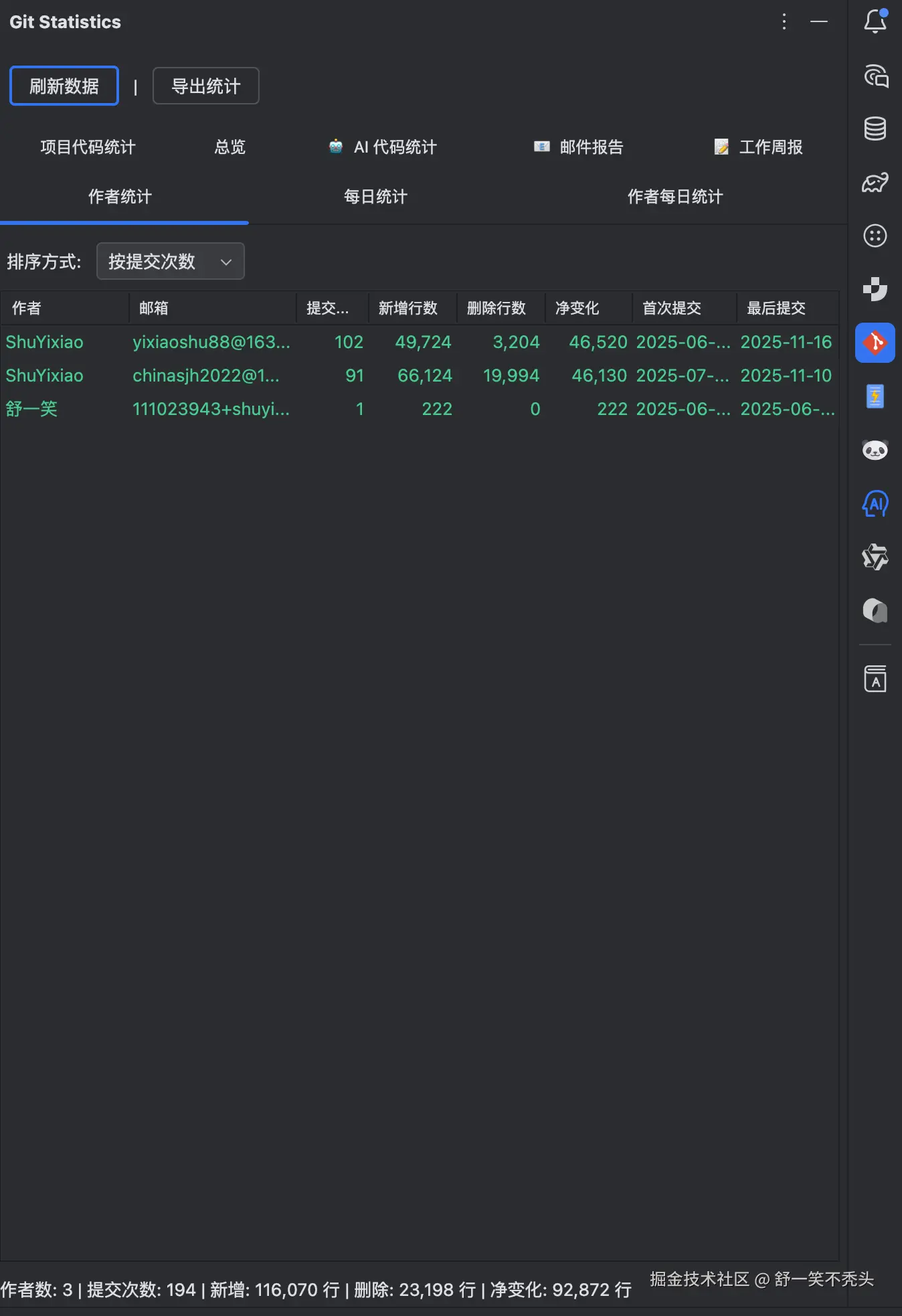 用户反馈显示,团队需要更好的代码协作洞察。我开发了: