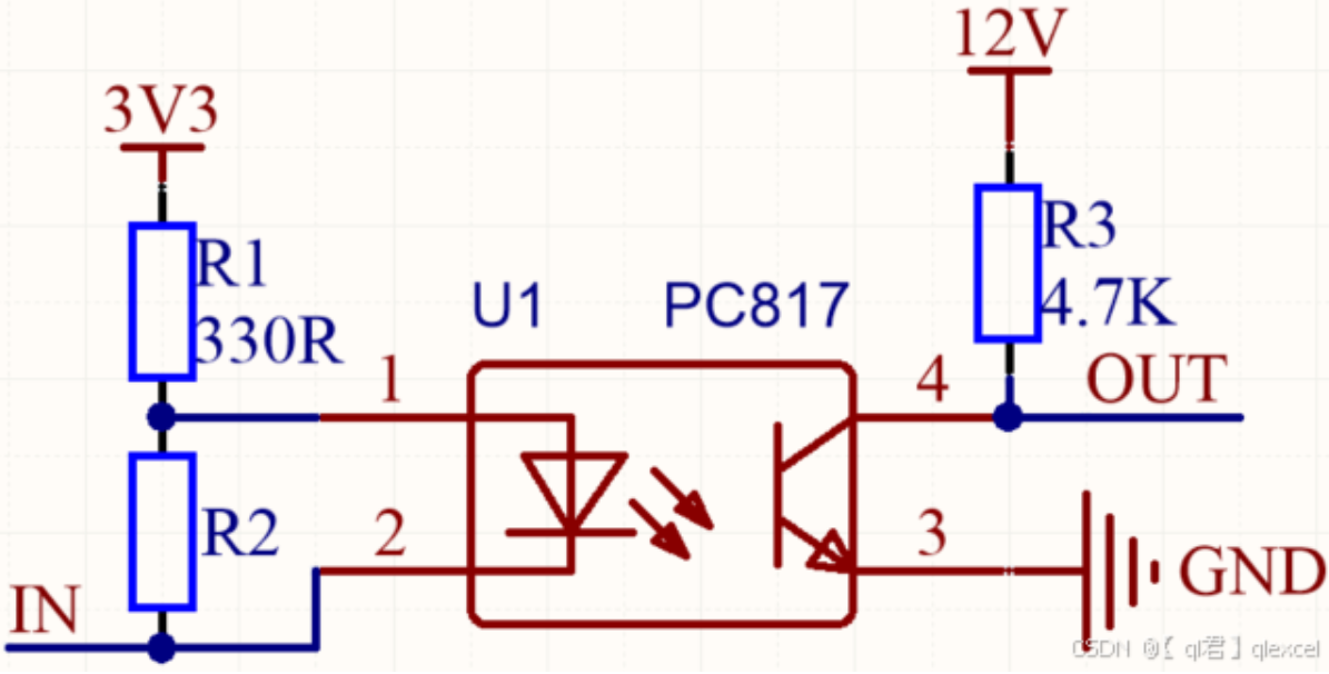 👉 输入与输出之间通过光耦的塑料体隔离,电气上完全不直接相连。