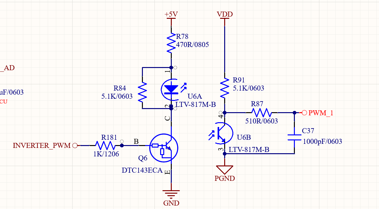 图中的 U6A/U6B(LTV-817M-B) 就是光耦。