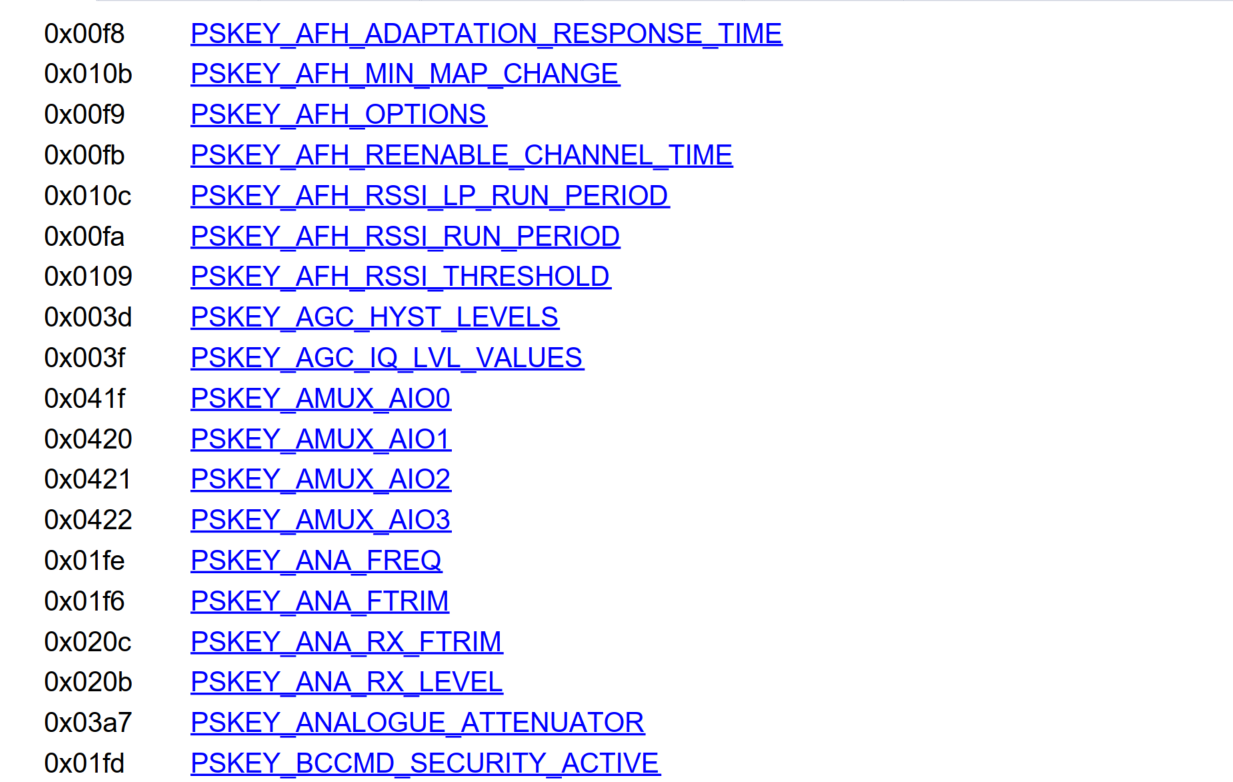1 .2个byte key(pskeys)--这部分在文档Pskeys list.pdf 中查看对应的值