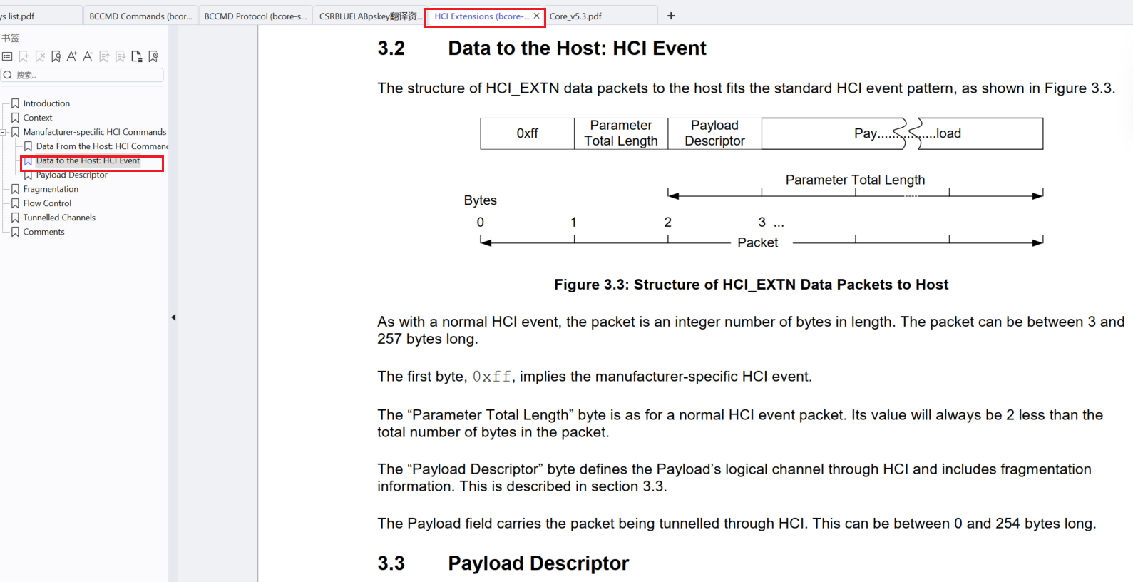 HCI EVENT跟command差不多,就不在写了,可以直接看文档