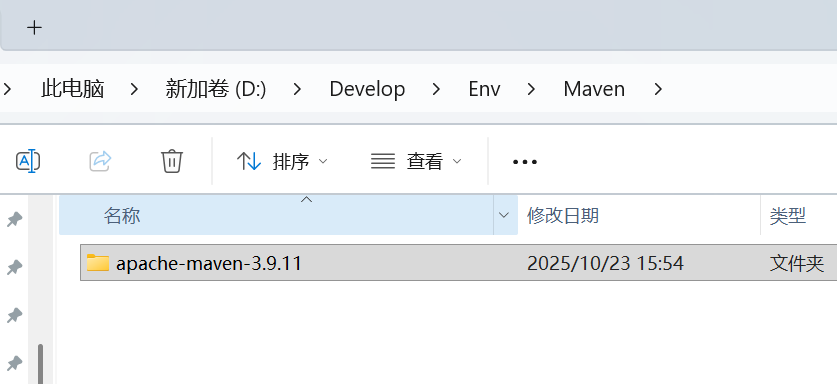 将下载的压缩包解压至D:\Develop\Env\Maven(我删除了外面的那一层)。