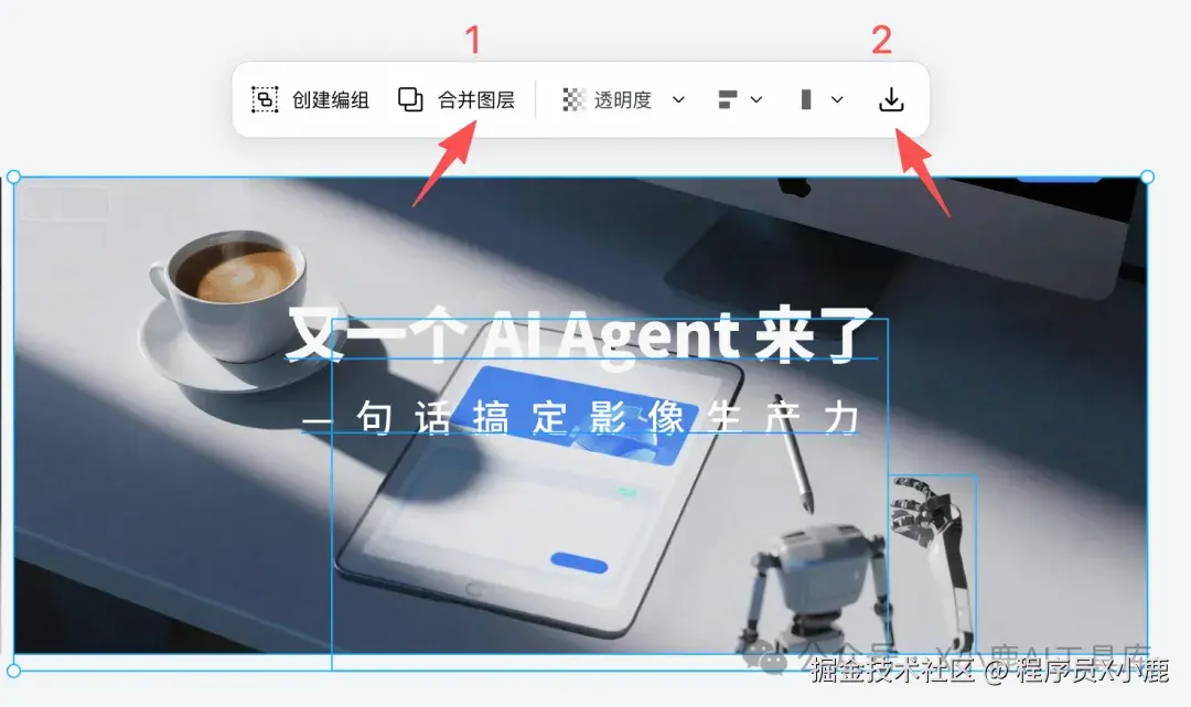 修改完成后,记得先「合并图层」再「下载」,否则可能仅仅是把某一个图层下载下来了,不完整。