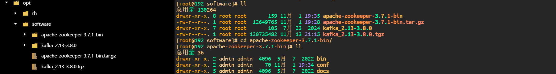 下载完成后,上传到服务器的指定目录上,因为要配合ZK使用,所以推荐放在和ZK在同一个路径下: