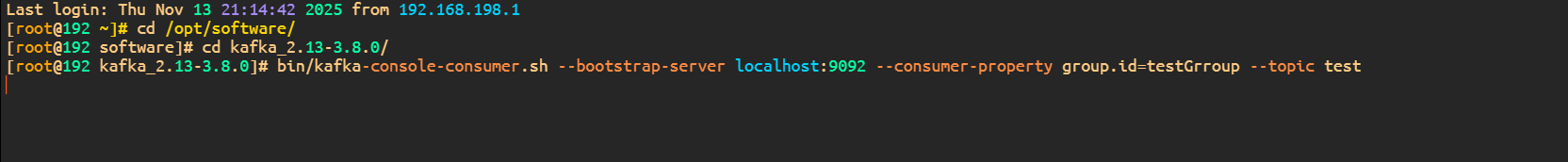 group.id=testGrroup1 --topic test