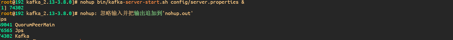 nohup bin/zookeeper-server-start.sh config/zookeeper.properties &
