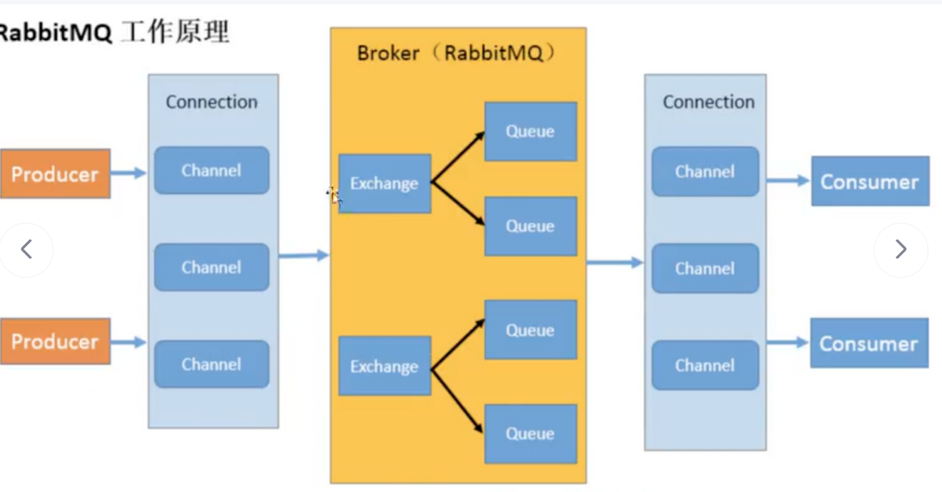 - Rabbit MQ是生产者先将消息发送到Channel通道中,然后再由通道发送给具体的交换机,交换机和队列绑定,消费者也是通过通道从对立中拉取消息。
