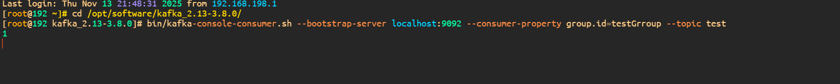 解压完成后,先启动ZK,然后进入Kafka解压出的文件夹,执行:
