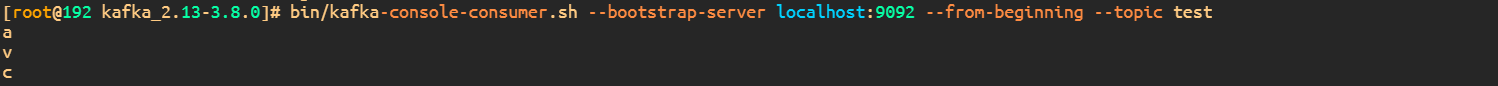 bin/kafka-console-consumer.sh --bootstrap-server localhost:9092 --from-beginning --topic test