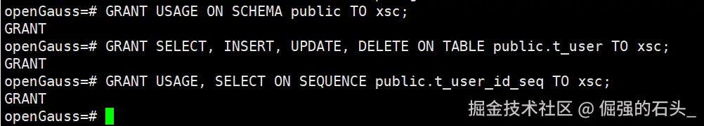 t_product需至少SELECT, UPDATE,对t_order需INSERT, SELECT,并为隐式序列授予USAGE, SELECT(例如t_product_id_seq、t_order_id_seq)。 - 并发冲突:若遇到