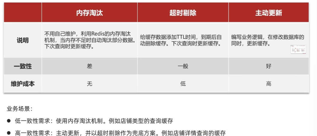 主动更新 : 我们可以手动调用方法把缓存删掉,通常用于解决缓存和数据库不一致问题
