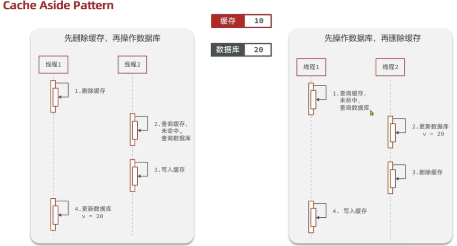 标准的操作方式就是岔村数据库之前先查询缓存,如果缓存数据存在,则直接从缓存中返回,如果缓存数据不存在,再查询数据库,然后将数据存入redis。