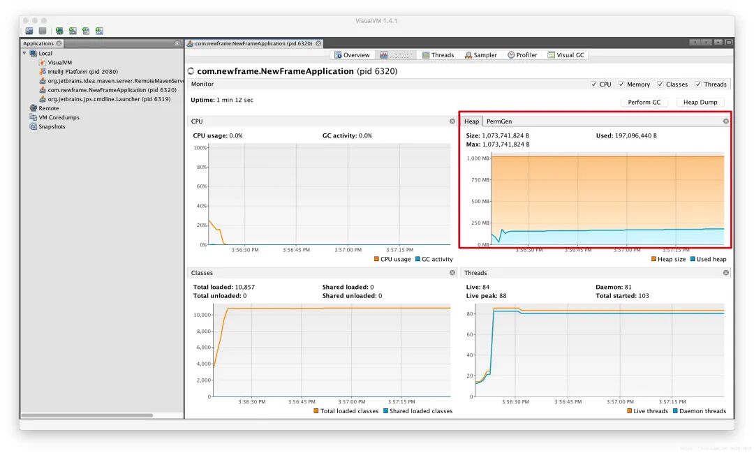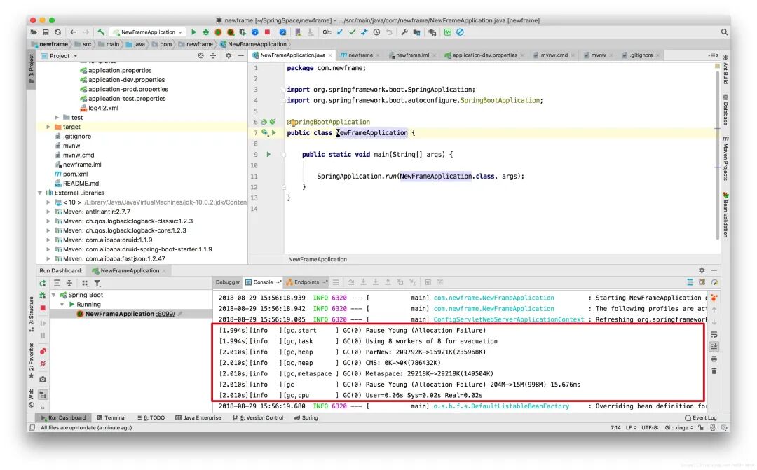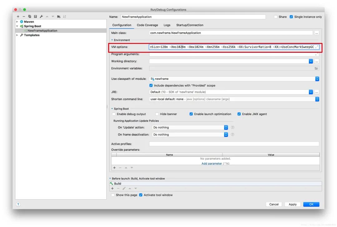 $ java -jar -XX:MetaspaceSize=128m -XX:MaxMetaspaceSize=128m -Xms1024m -Xmx1024m -Xmn256m -Xss256k -XX:SurvivorRatio=8 -XX:+UseConcMarkSweepGC newframe-1.0.0.jar1