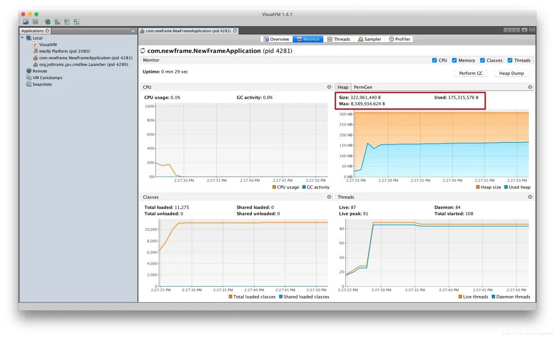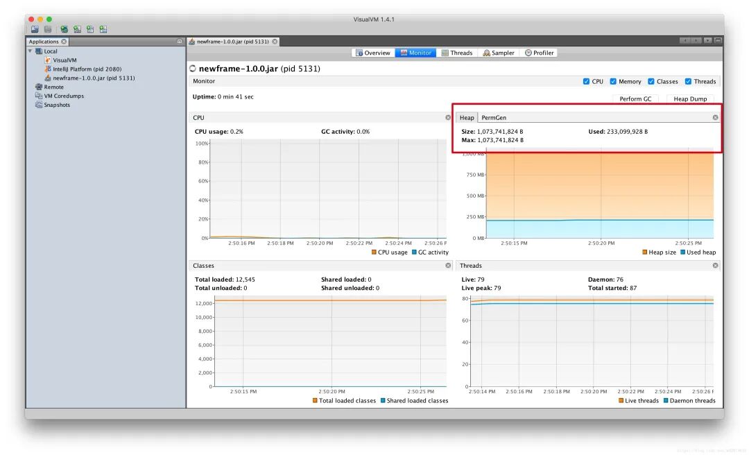 看一下堆栈分配:很明显默认的最大堆内存分配了8个G。很明显的不合理嘛。