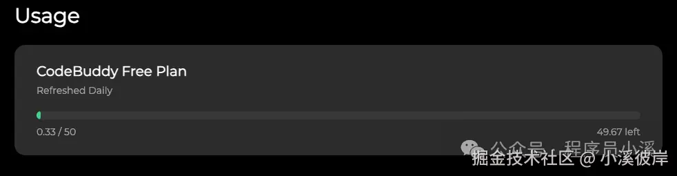 经测试发现,CodeBuddy Code CLI国际版使用的是CodeBuddy IDE国际版额度,通过CodeBuddy IDE国际版可以查询额度消耗情况。