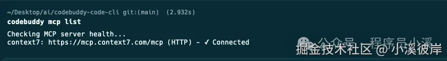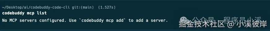 在命令行终端输入 codebuddy mcp list 可以快速查看mcp列表