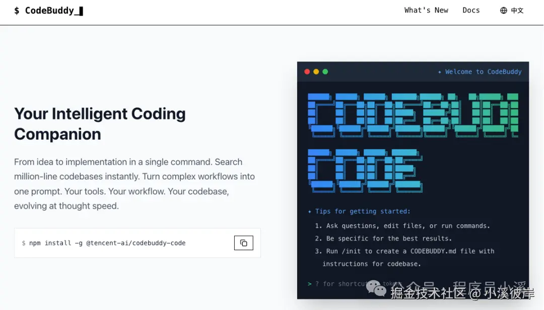 CodeBuddy Code CLI的安装非常简单,一行命令即可完成安装: