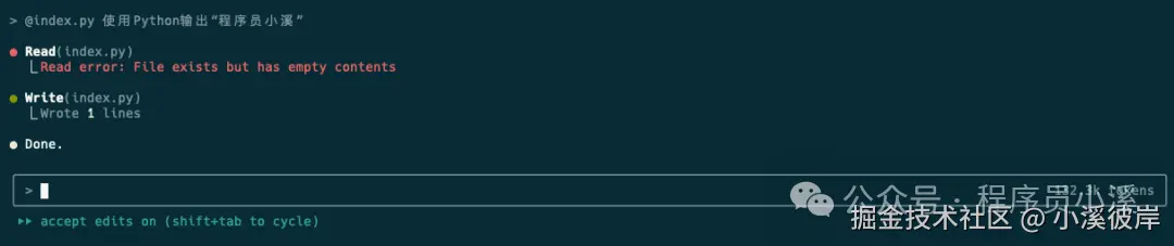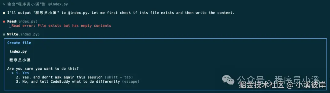 开启此功能后,CodeBuddy Code CLI会 自动创建、编辑 文件,而不是每次都需要我们手动确认