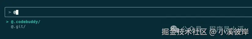 CodeBuddy Code CLI支持添加文件上下文,通过 @ 命令查看当前工作区文件列表