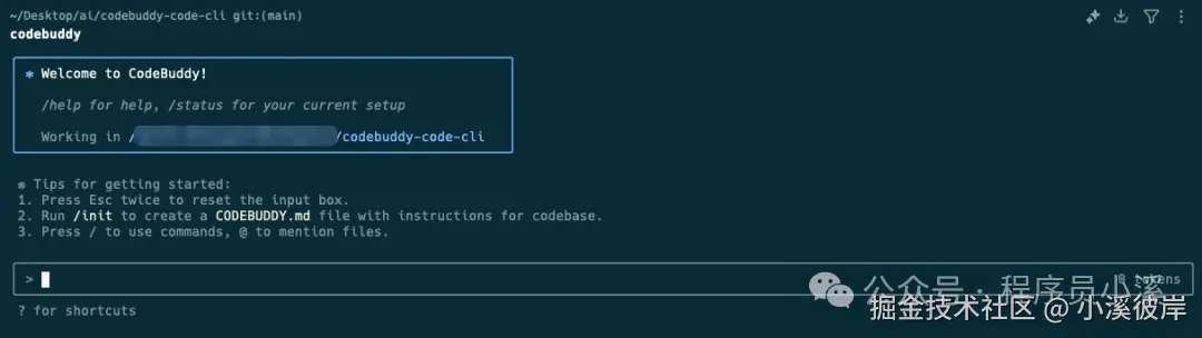 登录成功后,就可以进入CodeBuddy Code CLI主界面了
