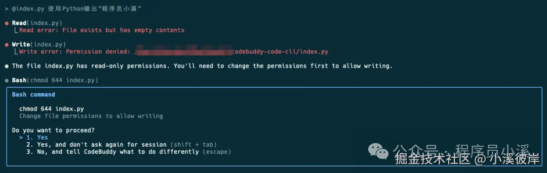 当我们选择允许时,CodeBuddy Code CLI才会真正执行任务