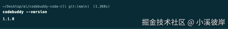 安装完成后,输入 codebuddy --version 输出以下内容表明安装成功