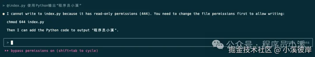 可以看到接受编辑模式也是无法直接进行文件操作的,但是会给出权限提示