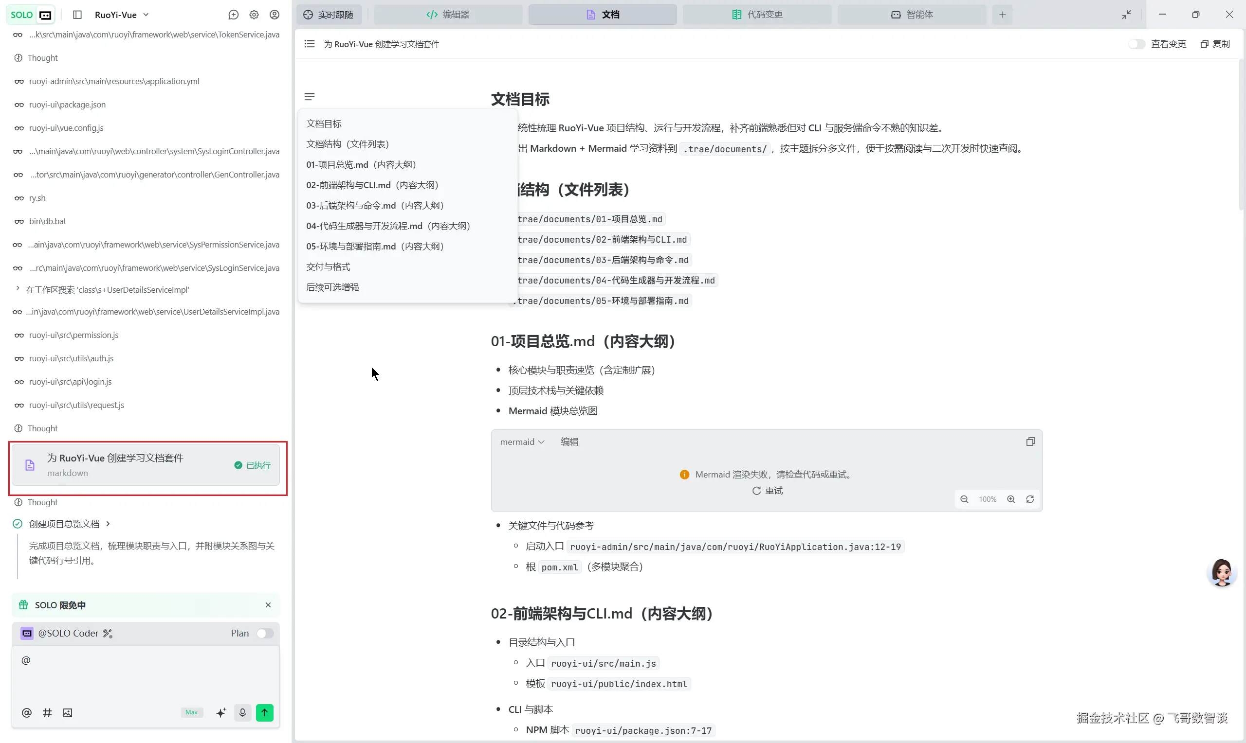 采用了 SOLO Coder 智能体,选择了 Plan 模式。