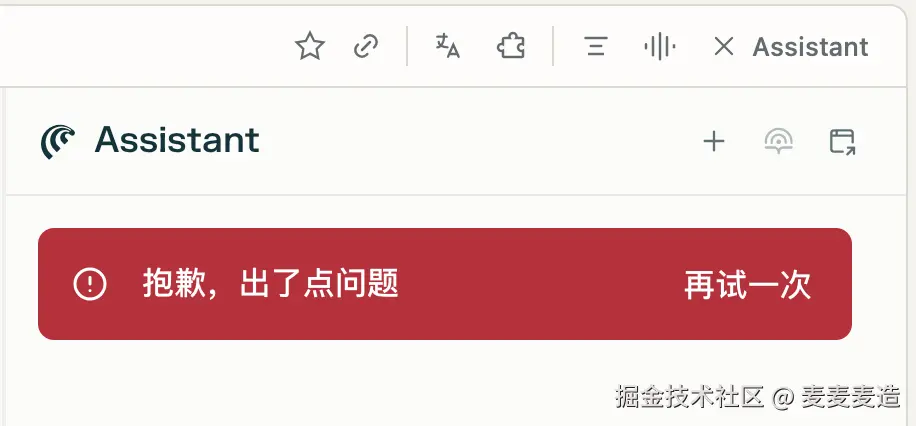 同时经常出现这种错误提示,在窗口和 Assistant 上都比较频繁。
