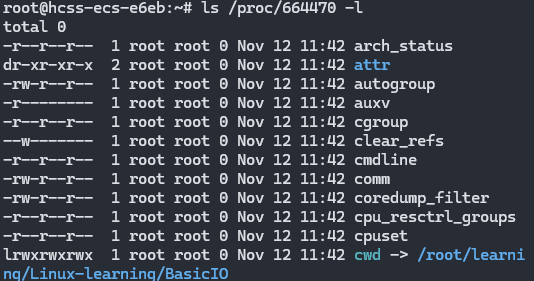 通过 ls查看进程文件夹,可以看到其 cwd,这正是创建"hello.txt"的目录