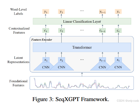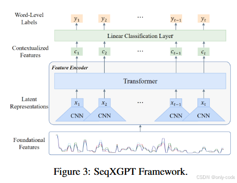 作者在 第 5 页 Figure 3 里画出了完整的框架图,从底部的"Foundational Features(四路波形)",到中部 CNN/Transformer,再到顶部的 word-level labels,非常直观。