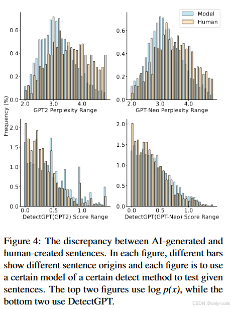 - 上面两张图画的是 GPT-2 / GPT-Neo 下的困惑度分布;