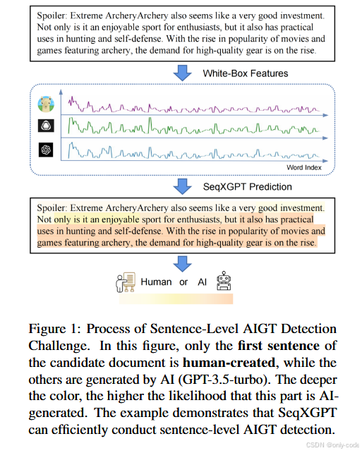 这说明一个现实:在句子级别上,简单的困惑度或 DetectGPT 风格的统计信号已经不够用了,需要更复杂的模式挖掘。SeqXGPT 通过 CNN + Transformer 在多模型波形上挖到的,就是这样一种更细的模式。