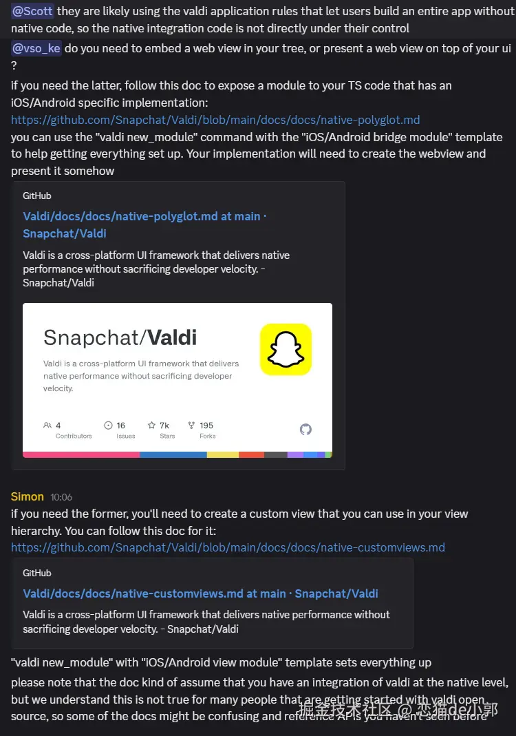 所以,目前看来 Snapchat 确实有着出色的设计,比如自定义的 C++ 布局引擎和 Polyglot ,但是它需要走的路还长,毕竟作为跨平台框架,它不再只是需要面对来自内部的压力,Valdi 更需要得到社区的支持,并且有更多丰富的案例来帮助开发者投入其中,重要的是,需要让开发者看到 Snapchat 持续维护开源的决心的行动。