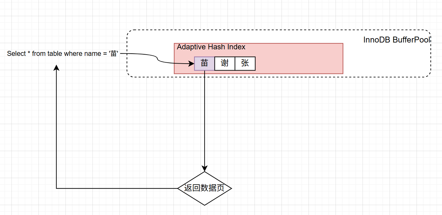 - 如果找到匹配的索引键(哈希命中),直接通过存储的物理地址访问数据页,跳过 B+ 树的遍历。