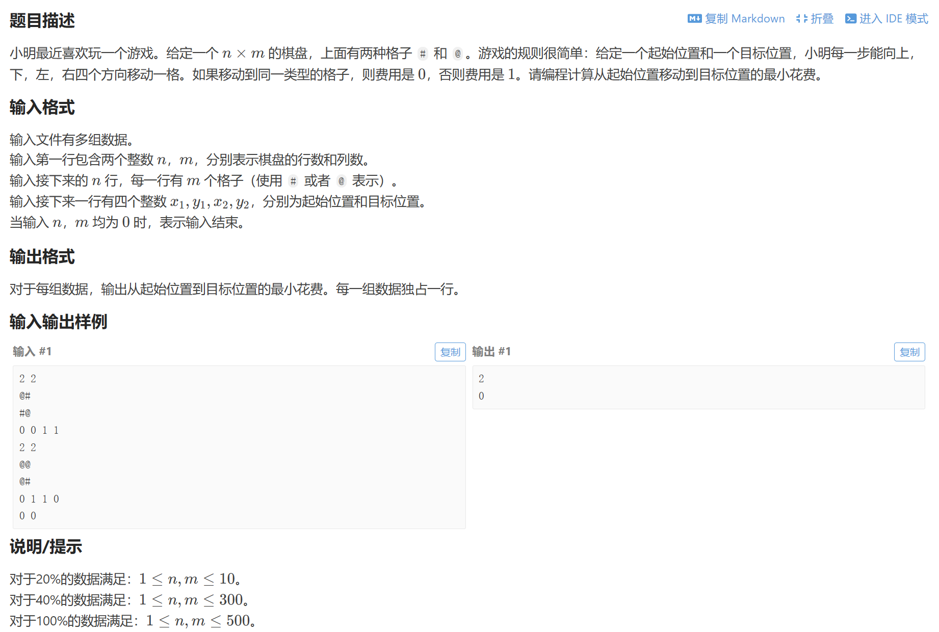 if(c==a[nx][ny])q.push_front({nx,ny});//本次不用消耗代价 贪心地认为是更优的 放到队首